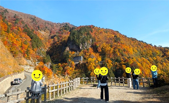 225.秋の紅葉 今回はホワイトロードに出かけました。料金が高いのでめったに来れません。それにマイクロバスをマスクで長時間は皆辛かったかもしれません。道のりは到着前から赤と黄色で緑やオレンジが混ざりとても綺麗な紅葉が見れた、と皆喜んでいました。 帰りに寄った餅屋で一個150円の草餅を皆買って何十年ぶりに来れたという方も今回のお出かけを大層喜んでいました。